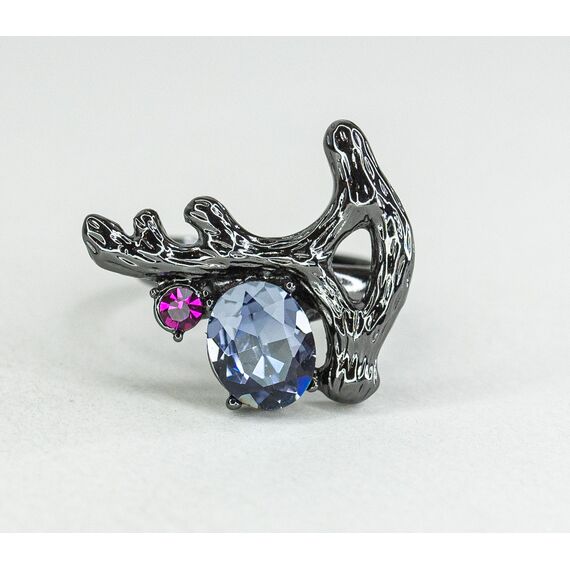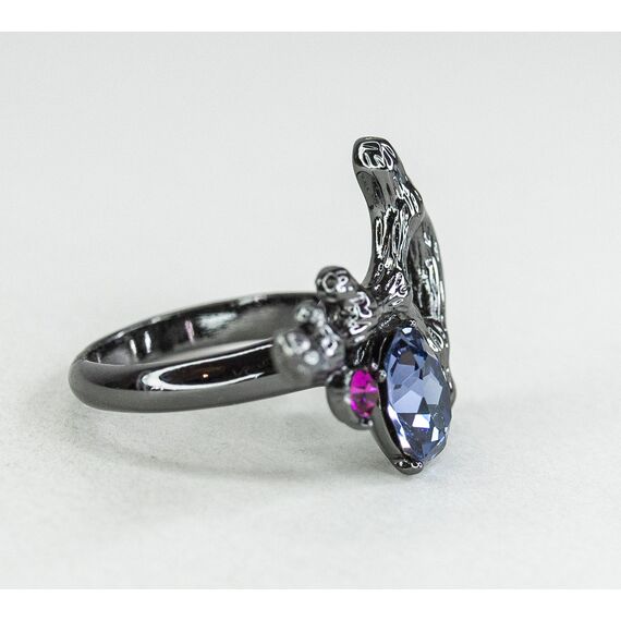 Кольцо женское из гипоаллергенного ювелирного сплава черного цвета. Вставка- ювелирное стекло, цвет- голубой, розовый, сиреневый. Высота кольца-2,0см, ширина-2,0см. Размер-18,0.