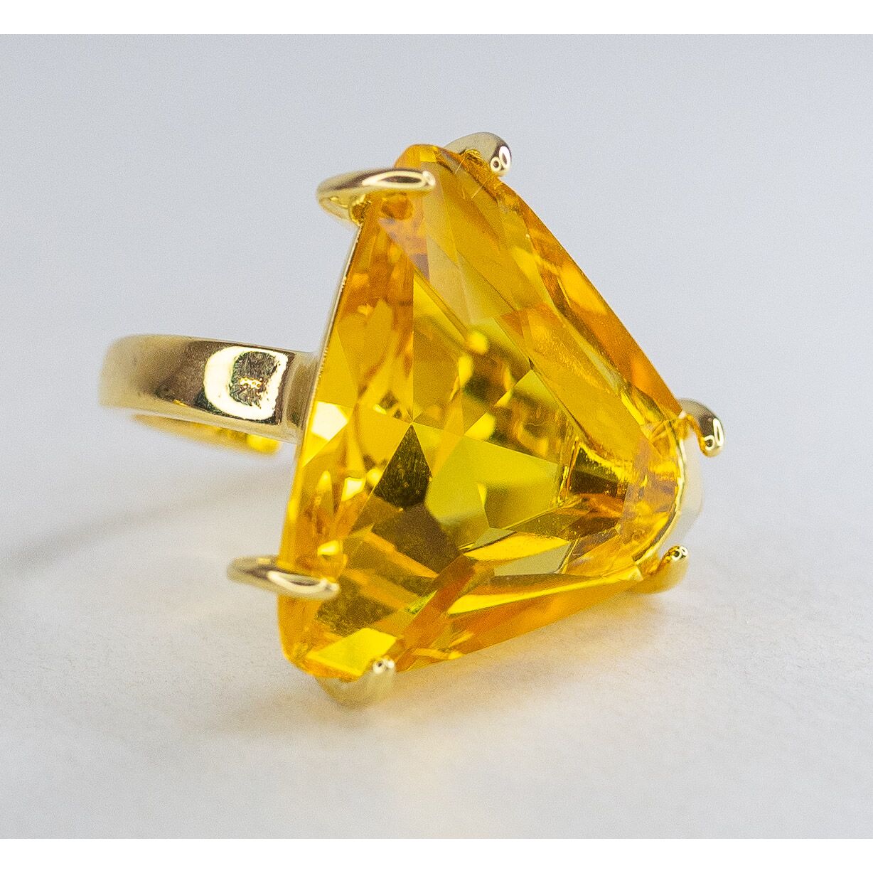 Кольцо женское из гипоаллергенного ювелирного сплава, цвет-желтый. Вставка- ювелирное стекло желтого цвета. Высота кольца-3,0см, ширина-3,0см. Кольцо- незамкнутое, безразмерное.