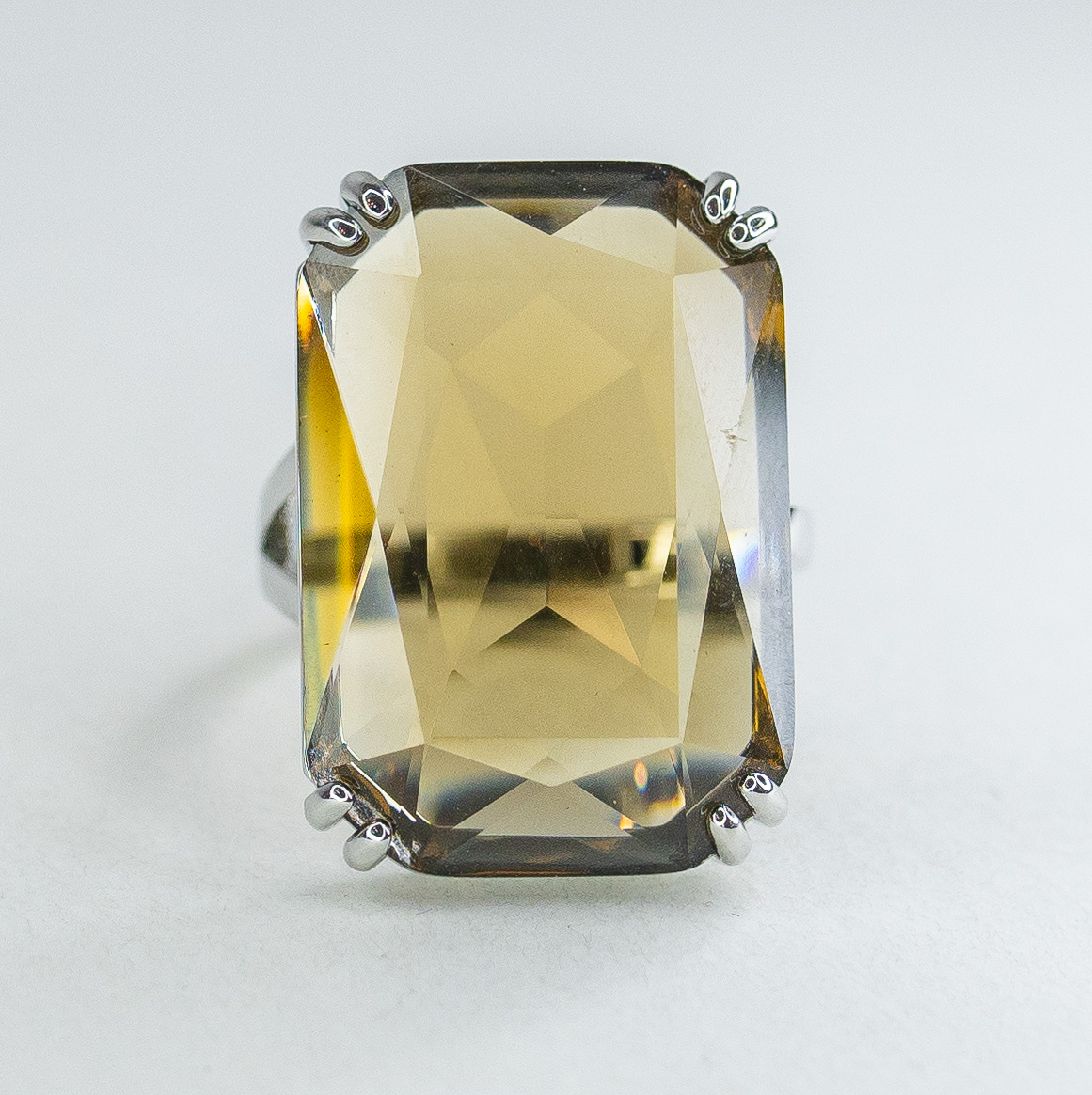 Кольцо женское из гипоаллергенного ювелирного сплава, цвет- серый. Вставка- ювелирное стекло, цвет- коричневый. Высота кольца-2,5см, ширина-1,5см. Кольцо- незамкнутое, безразмерное.