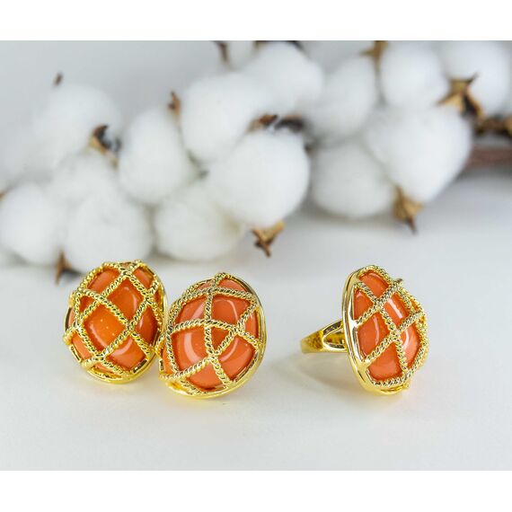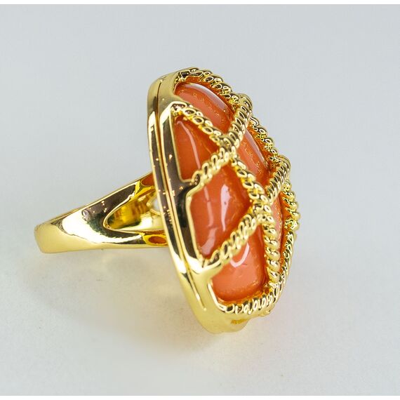 Кольцо женское из гипоаллергенного ювелирного сплава желтого цвета. Покрытие эмалью, цвет- оранжевый. Высота кольца-3,0см, ширина-2,5см. Размер-18,0.