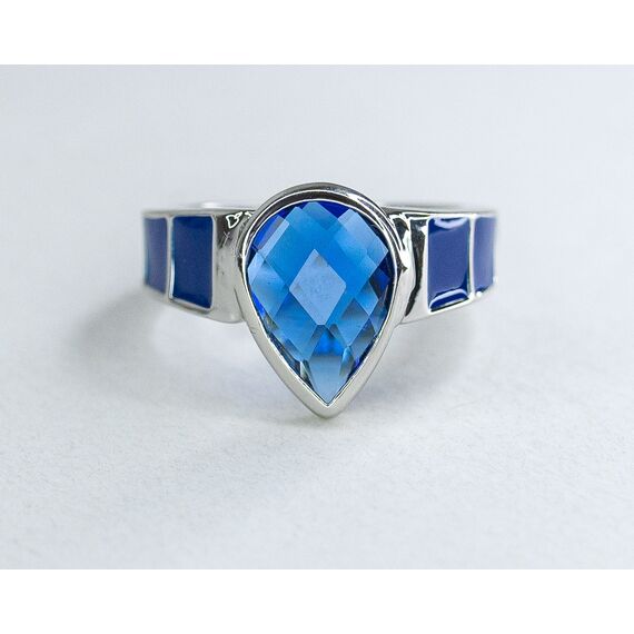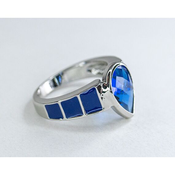 Кольцо из гипоаллергенного ювелирного сплава серого цвета. Покрытие эмалью, цвет- синий. Вставка- кварц синего цвета. Высота кольца- 1,5см, ширина- 2,0см. Размер-17,0.