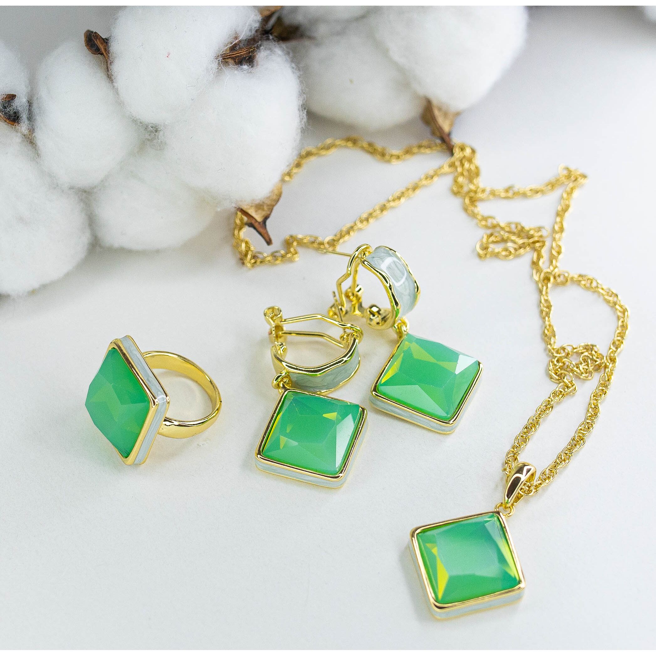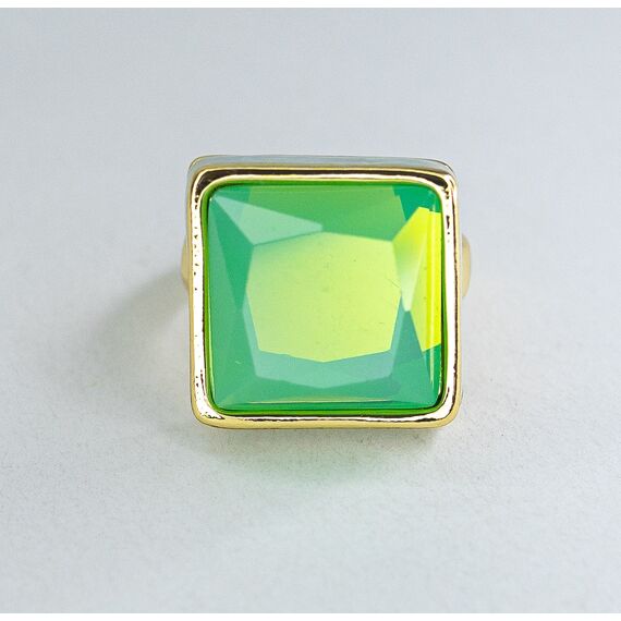 Кольцо женское из гипоаллергенного ювелирного сплава желтого цвета. Покрытие эмалью, цвет- серо-голубой. Вставка- кварц зеленого цвета. Высота кольца- 2,0см, ширина- 2,0см. Размер-18,0.