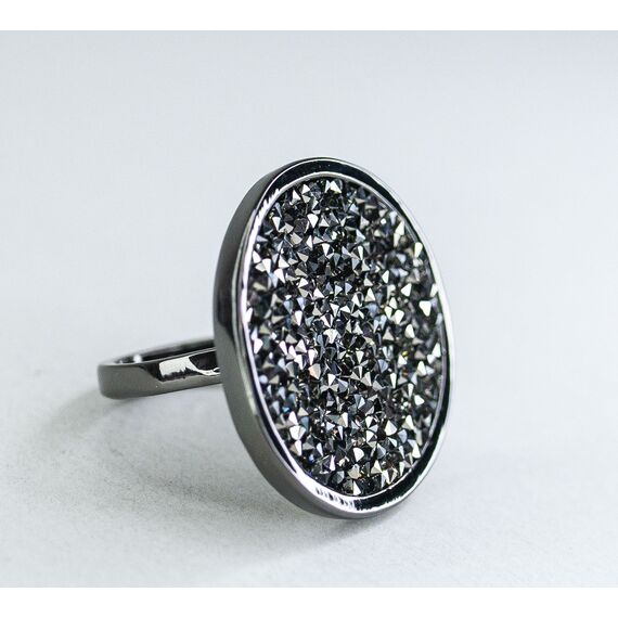 Кольцо из гипоаллергенного ювелирного сплава черного цвета. Вставка- кристаллы, цвет- серый. Высота кольца-3,0см, ширина-3,0см. Размер-17,0.