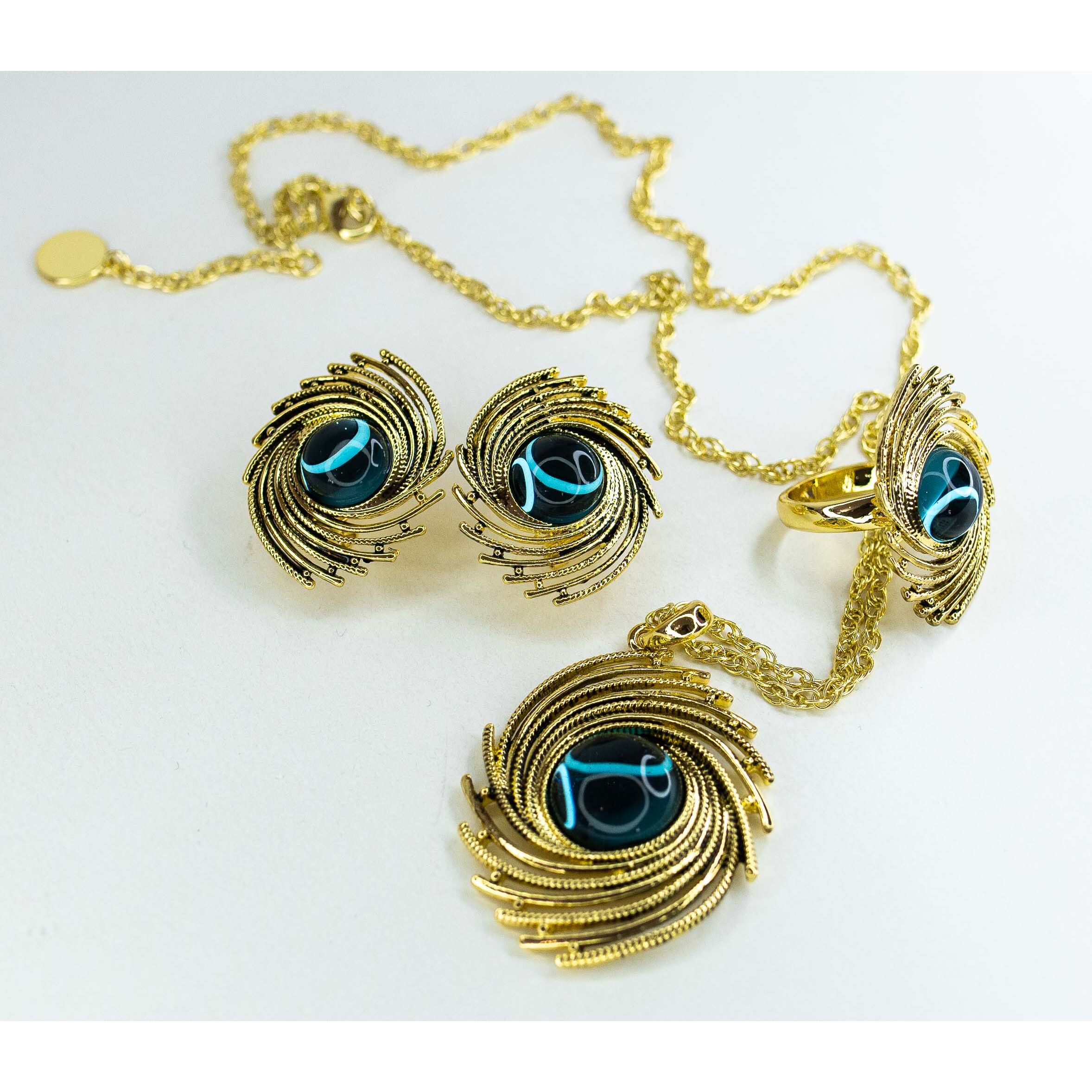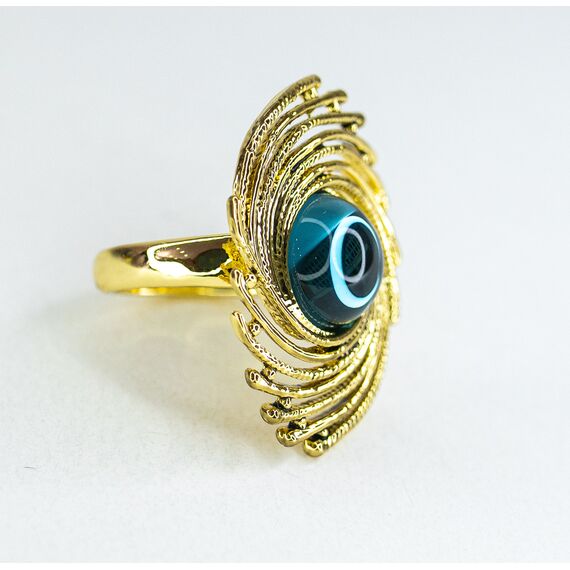 Кольцо женское из гипоаллергенного ювелирного сплава желтого цвета. Вставка- улексит (кошачий глаз) синего цвета. Высота кольца-3,0см, ширина-2,0см. Размер-17,0.