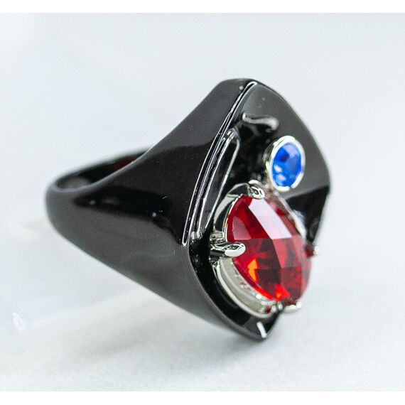Кольцо из гипоаллергенного ювелирного сплава черного цвета. Вставка- ювелирное стекло синего и красного цвета. Высота кольца-2,5см, ширина-2,5см. Размер-17,0.