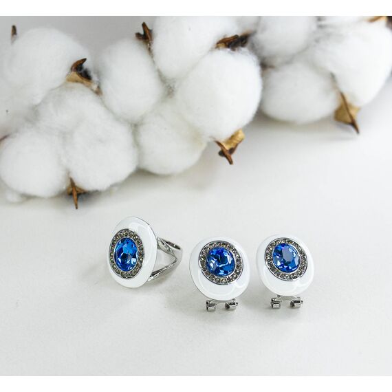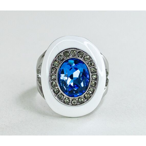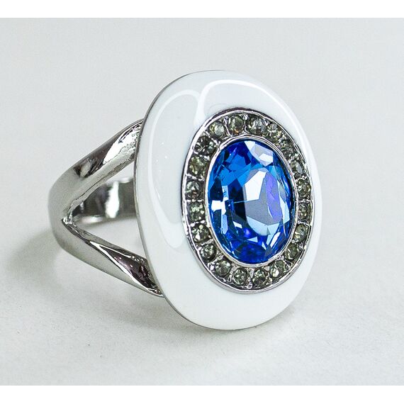 Кольцо женское из гипоаллергенного ювелирного сплава серого цвета. Вставка- ювелирное стекло, цвет- белый, сиреневый. Покрытие эмалью, цвет-белый. Высота кольца-2,0см, ширина-1,5см. Размер-17,0.
