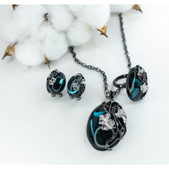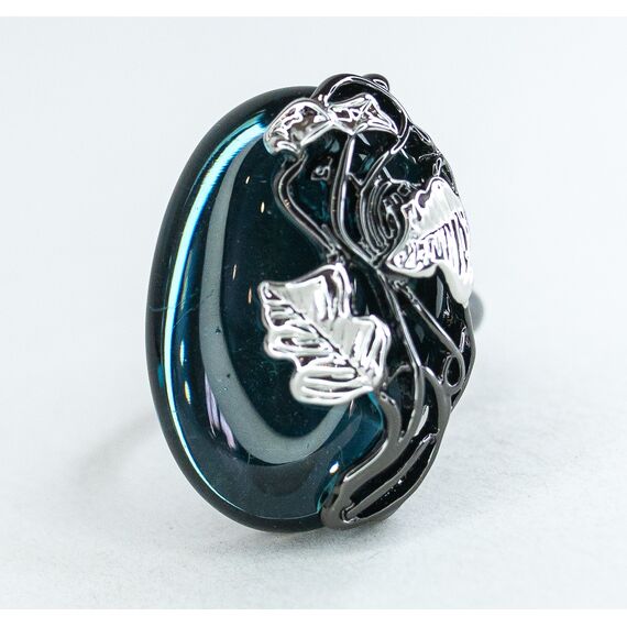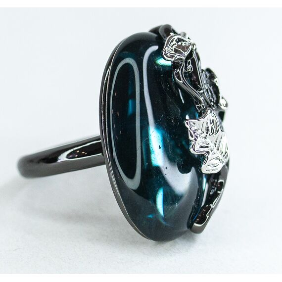 Кольцо женское из гипоаллергенного ювелирного сплава черного и серого цвета. Вставка- улексит (кошачий глаз) , цвет- лондон блю. Высота кольца-3,0см, ширина-2,0см. Размер-17,0.