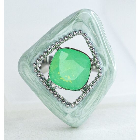 Кольцо женское из гипоаллергенного ювелирного сплава серого цвета. Вставка- кварц , цвет- зеленый. Покрытие эмалью серо-зеленого цвета. Высота кольца-3,0см, ширина-2,5см. Размер-18,0.