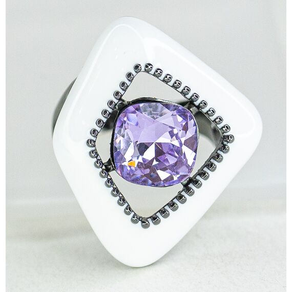 Кольцо женское из гипоаллергенного ювелирного сплава черного цвета. Вставка- кварц , цвет- сиреневый. Покрытие эмалью белого цвета. Высота кольца-3,0см, ширина-2,0см. Размер-17,0.