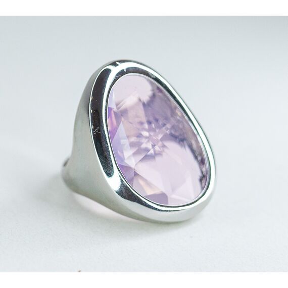 Кольцо женское из гипоаллергенного ювелирного сплава серого цвета. Вставка- ювелирное стекло розового цвета. Высота кольца-3,0см., ширина-2,0см. Размер-18,0.