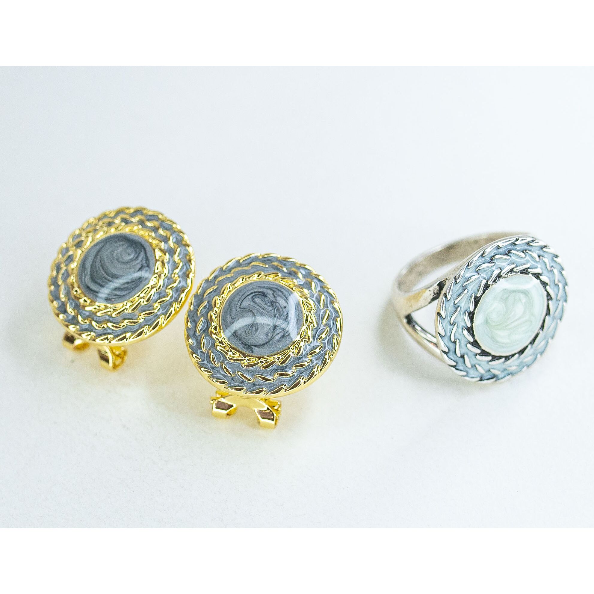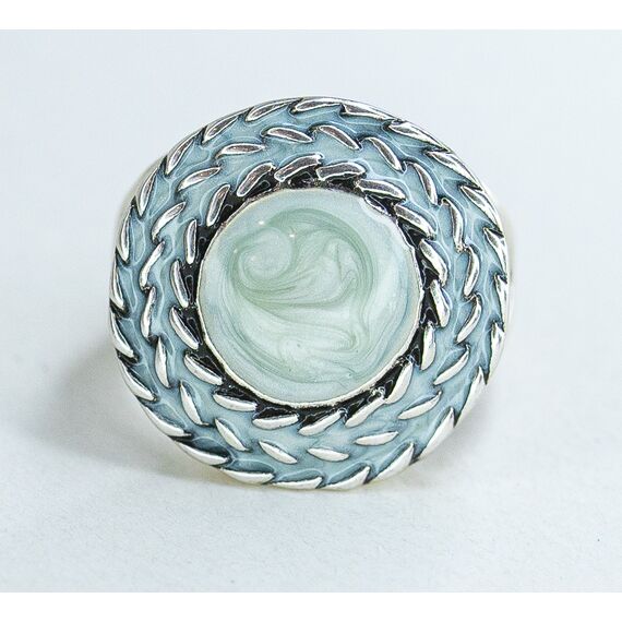 Кольцо женское из гипоаллергенного ювелирного сплава серого цвета. Без вставок. Покрытие эмалью, цвет- серый. Высота кольца-2,0см, ширина-2,0см. Размер-18,0.