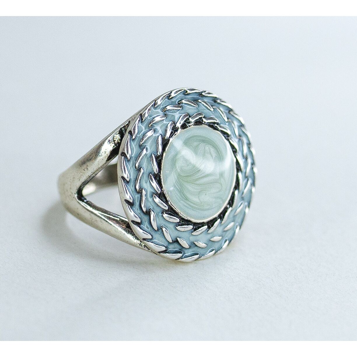 Кольцо женское из гипоаллергенного ювелирного сплава серого цвета. Без вставок. Покрытие эмалью, цвет- серый. Высота кольца-2,0см, ширина-2,0см. Размер-17,0.