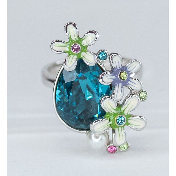Кольцо женское из гипоаллергенного ювелирного сплава серого цвета. Вставка- ювелирное стекло, цвет- синий, розовый, зеленый и иск. жемчуг белого цвета. Высота кольца-2,5см, ширина-2,0см. Размер-16,0.