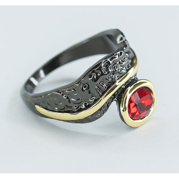 Кольцо женское из гипоаллергенного ювелирного сплава черного и желтого цвета. Вставка- ювелирное стекло, цвет- красный. Высота кольца-1,5см, ширина-2,0см. Размер-20,0.