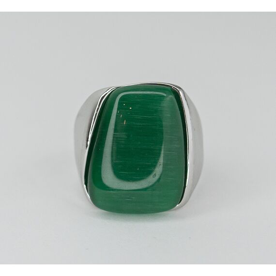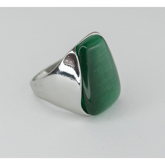 Кольцо женское из гипоаллергенного ювелирного сплава серого цвета. Вставка- улексит ( кошачий глаз) зеленого цвета. Высота кольца -2,5см, ширина -2,0см. Размер-19,0.