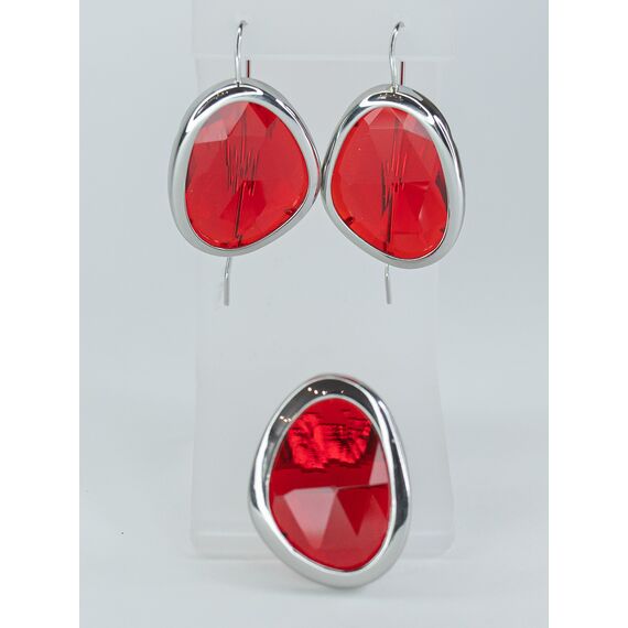 Кольцо женское из гипоаллергенного ювелирного сплава серого цвета. Вставка- ювелирное стекло, цвет- красный. Высота кольца- 3,0см, ширина-2,5см. Разме17,0.