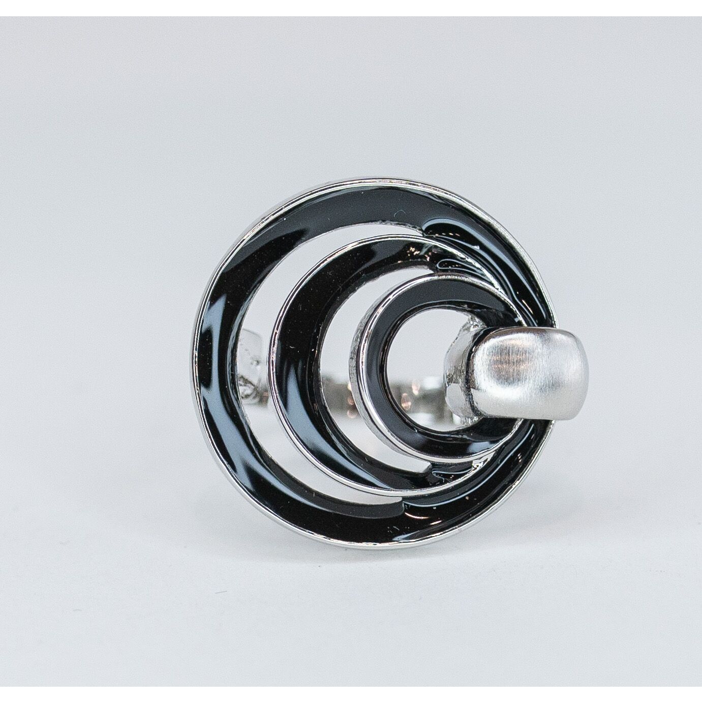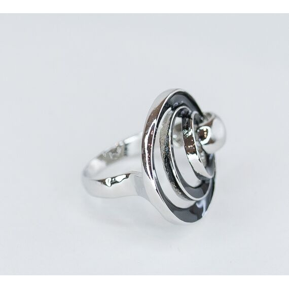 Кольцо женское из гипоаллергенного ювелирного сплава серого цвета. Без вставок. Покрытие эмалью черного цвета. Высота кольца-3,0см, ширина-3,0см. Размер-18,0.