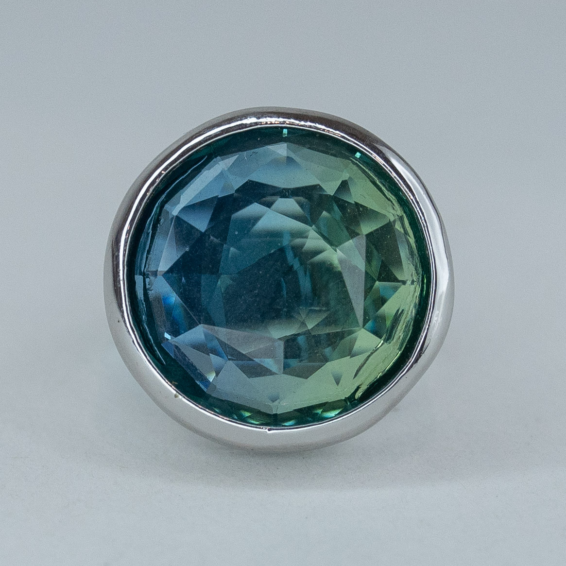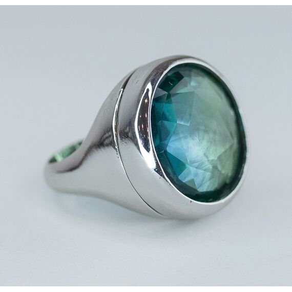 Кольцо женское из гипоаллергенного ювелирного сплава серого цвета. Вставка- кварц зеленого цвета. Высота кольца-2,0см, ширина-2,0см. Размер-19,0.