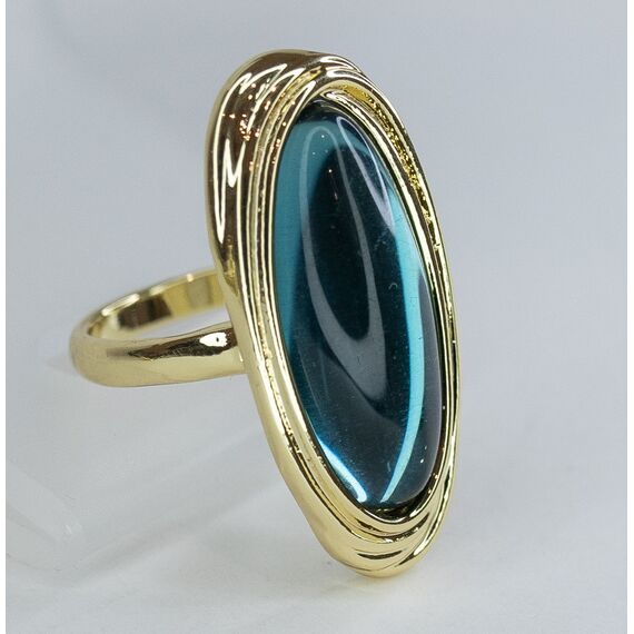 Кольцо женское из гипоаллергенного ювелирного сплава желтого цвета. Вставка- улексит, цвет- синий. Высота кольцо-4,0см, ширина-2,5см. Размер-19,0.