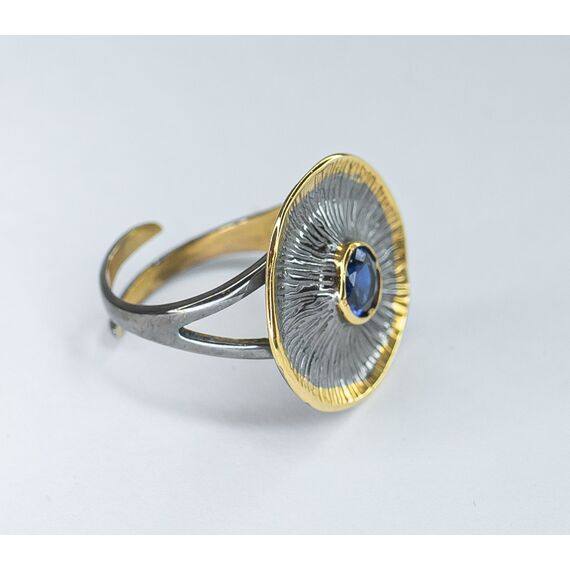 Кольцо женское из гипоаллергенной бронзы с позолотой и родием. Вставка- нат.янтарь синего цвета ( размер камня-0,8/0,5см). Высота кольца-2,5см, ширина-2,5см. Кольцо незамкнутое, безразмерное.