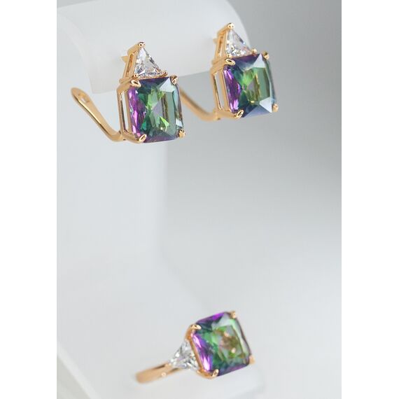 Кольцо из гипоаллергенного сплава желтого цвета со вставкой из кварца белого и мистик цвета. Высота кольца-1,2см, ширина-2,0см. Размер-17,0.