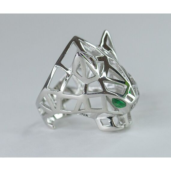 Кольцо женское из гипоаллергенного ювелирного сплава серого цвета. Вставка- циркон, цвет- зеленый. Высота кольца-3,0см, ширина-2,0см. Размер-19,0.