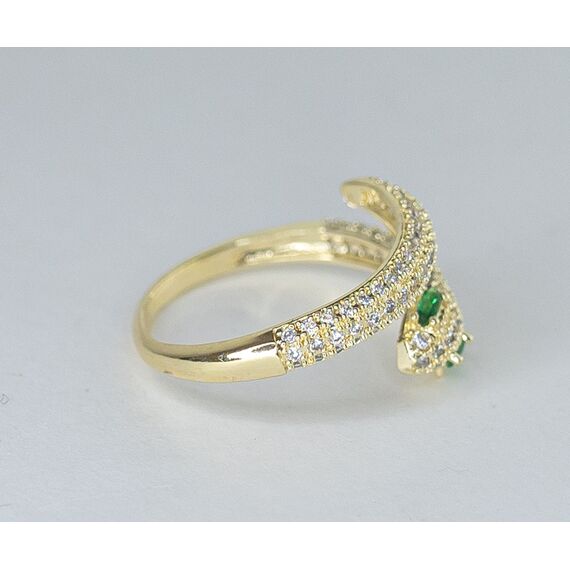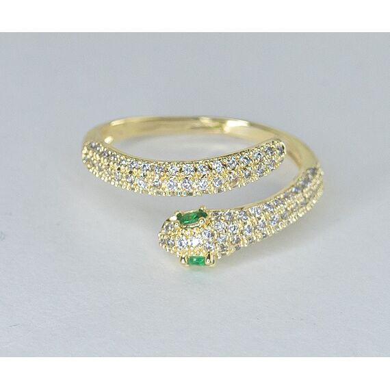 Кольцо женское из гипоаллергенного ювелирного сплава желтого цвета. Вставка- циркон, цвет- белый и зеленый. Высота кольца-1,0см, ширина-2,0см. Кольцо незамкнутое, безразмерное.