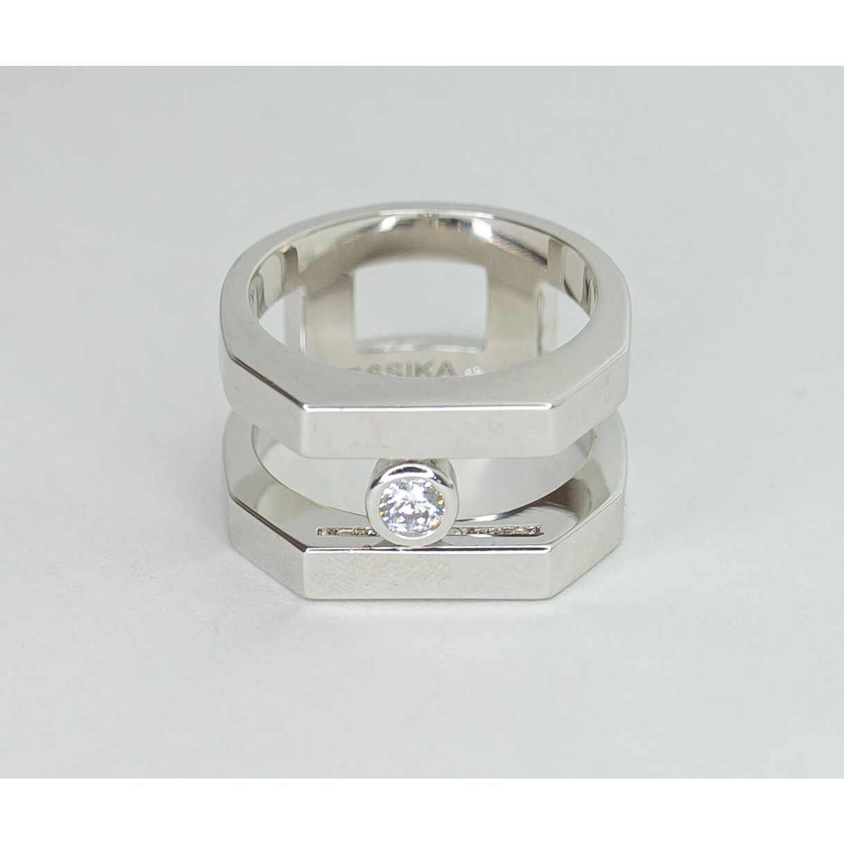 Кольцо женское из гипоаллергенного ювелирного сплава серого цвета. Вставка- циркон белого цвета. Высота кольца-1,5см, ширина-2,0см. Размер-18,0.