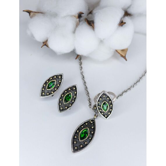 Кольцо женское из гипоаллергенного ювелирного сплава желтого и серого цвета. Вставка- кварц, цвет- зеленый. Высота кольца- 3,0см, ширина- 1,5см. Размер-17,0.
