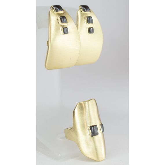 Кольцо женское из гипоаллергенного ювелирного сплава черного и желтого цвета. Без вставок. Высота кольца-- 3,0см, ширина-2,0см. Размер-18,0.