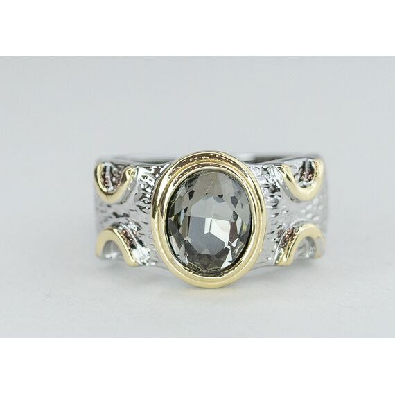 Кольцо женское из гипоаллергенного ювелирного сплава серого и желтого цвета. Вставка- ювелирное стекло серого цвета. Высота кольца-- 1,0см, ширина-2,0см. Размер-19,0.