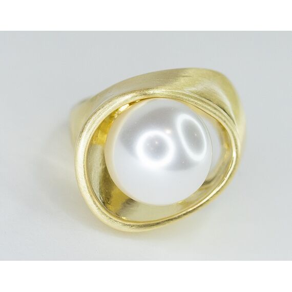 Кольцо женское из гипоаллергенного ювелирного сплава желтого цвета. Вставка- жемчуг иск. белого цвета. Высота кольца-2,0см, ширина-2,0см. Размер-17,0.