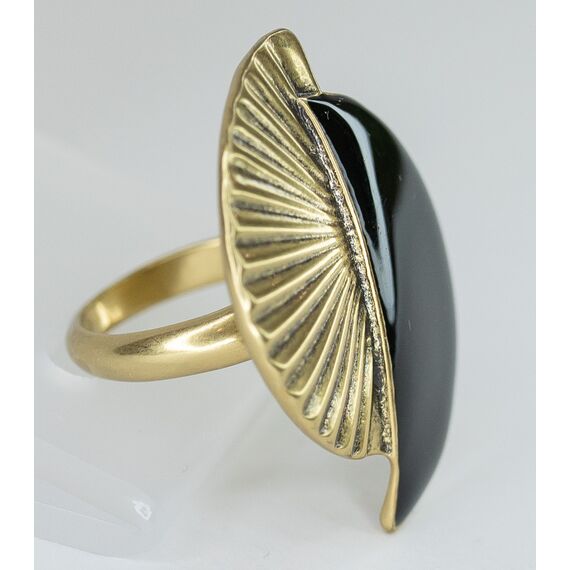 Кольцо женское из гипоаллергенного ювелирного сплава черного и желтого цвета. Без вставок. Покрытие эмалью черного цвета. Высота кольца-4,0см, ширина-3,0см. Размер-19,0.