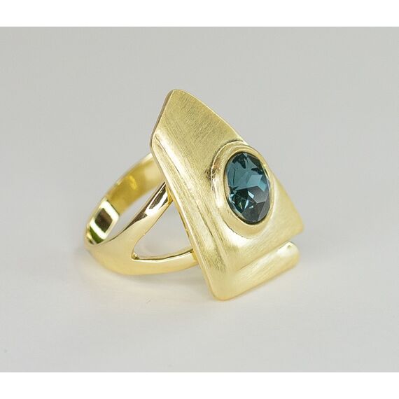 Кольцо женское из гипоаллергенного ювелирного сплава желтого цвета. Вставка- ювелирное стекло, цвет- лондон блю. Высота кольца- 3,0см, ширина-2,0см. Размер-18,0.