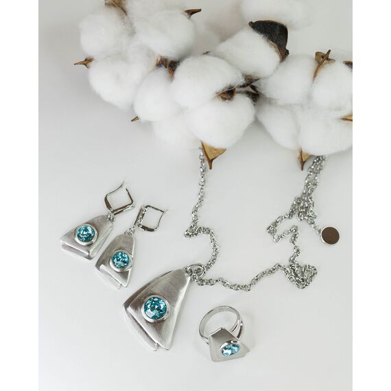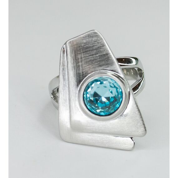 Кольцо женское из гипоаллергенного ювелирного сплава серого цвета. Вставка- ювелирное стекло, цвет- голубой. Высота кольца- 3,0см, ширина-2,0см. Размер-19,0.