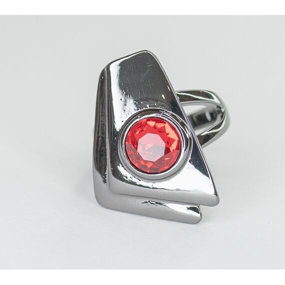 Кольцо женское из гипоаллергенного ювелирного сплава черного цвета. Вставка- ювелирное стекло, цвет- красный. Высота кольца- 3,0см, ширина-2,0см. Размер-19,0.
