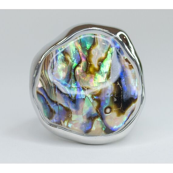 Кольцо женское из гипоаллергенного ювелирного сплава серого цвета. Вставка- перламутр радужного цвета. Высота кольца- 2,0см, ширина- 2,0см. Размер-18,0.