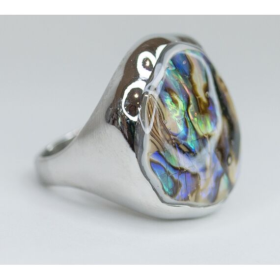 Кольцо женское из гипоаллергенного ювелирного сплава серого цвета. Вставка- перламутр радужного цвета. Высота кольца- 2,0см, ширина- 2,0см. Размер-19,0.