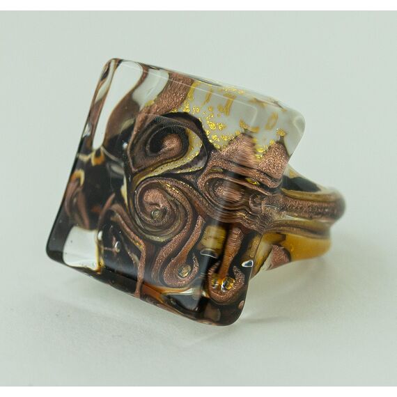 Кольцо женское из Муранского стекла, цвет-коричневый, желтый, черный. Высота кольца- 3,0см, ширина-3,0см. Размер-19,0.