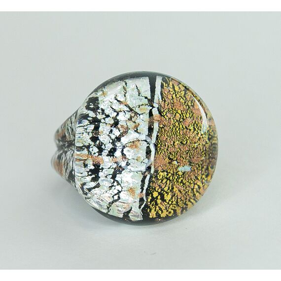 Кольцо женское из Муранского стекла, цвет-серый, желтый, черный. Высота кольца- 2,5см, ширина-2,5см. Размер-19,0.