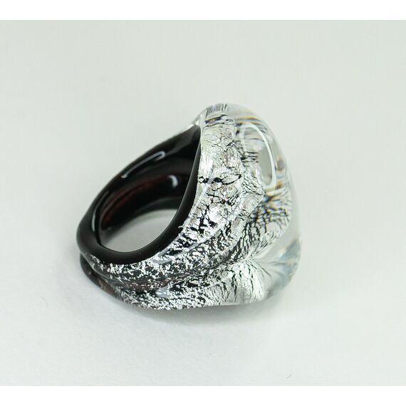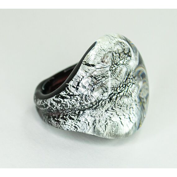 Кольцо женское из Муранского стекла, цвет-серый, черный. Высота кольца- 3,0см, ширина-3,0см. Размер-19,0.