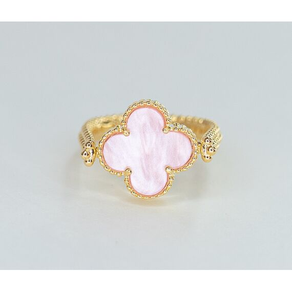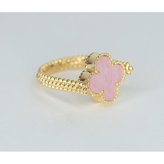 Кольцо женское из высококачественного гипоаллергенного ювелирного сплава желтого цвета с покрытием перламутром ( с одной стороны) розового цвета. Высота кольца- 0,2см, ширина-1,5см. Размер-18,0.