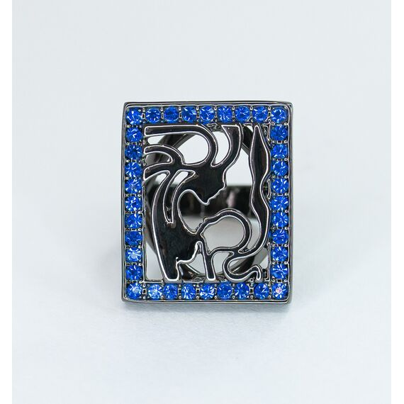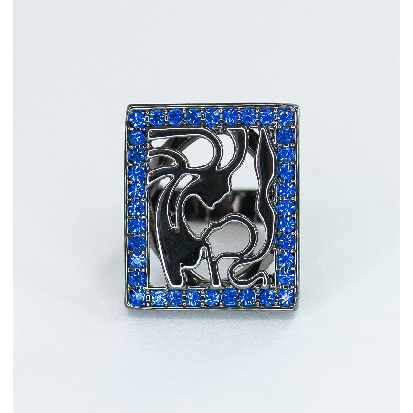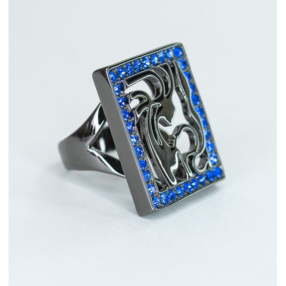 Кольцо женское из гипоаллергенного ювелирного сплава черного цвета. Вставка- кварц синего цвета. Высота кольца-2,5см, ширина-2,0см. Размер-18,0.