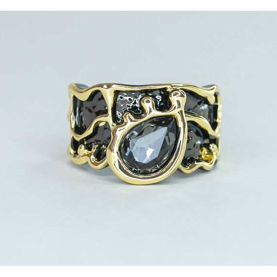 Кольцо женское из гипоаллергенного ювелирного сплава черного и желтого цвета. Вставка- кварц, цвет-серый. Высота кольца-1,0см, ширина-2,0см. Размер-17,0.