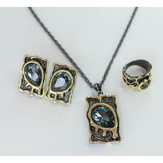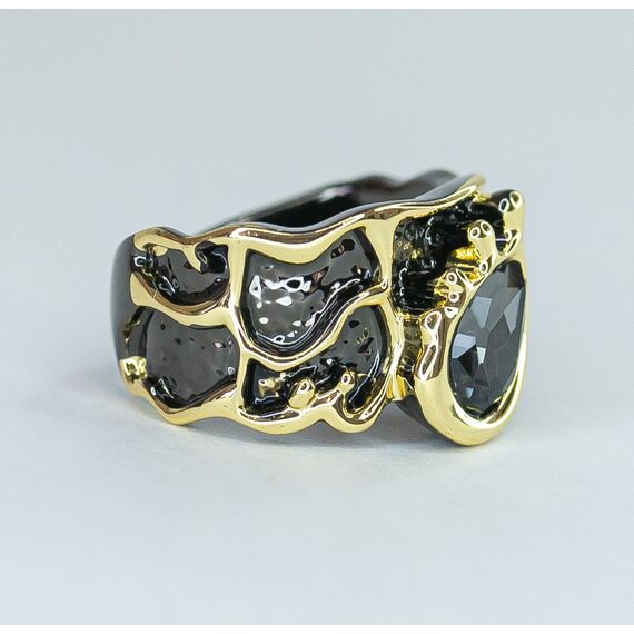 Кольцо женское из гипоаллергенного ювелирного сплава черного и желтого цвета. Вставка- кварц, цвет-серый. Высота кольца-1,0см, ширина-2,0см. Размер-18,0.