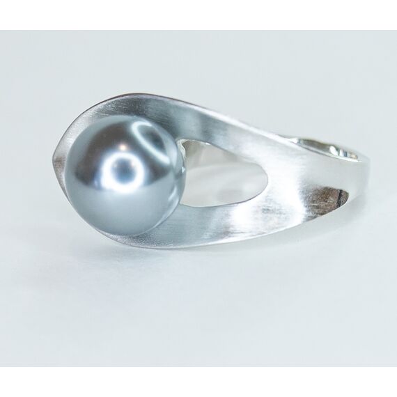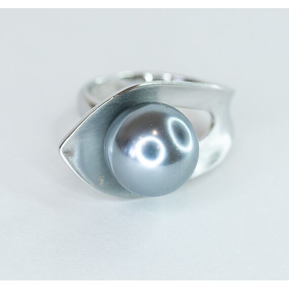 Кольцо женское из гипоаллергенного ювелирного сплава серого цвета. Вставка- жемчуг Майорка серого цвета. Высота кольца-1,5см, ширина-2,0см. Размер-17,0.