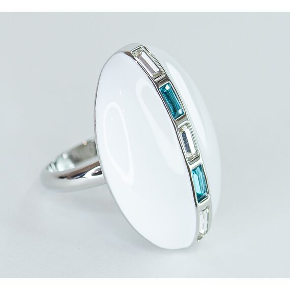 Кольцо женское из гипоаллергенного ювелирного сплава серого цвета. Вставка- кварц белого и голубого цвета. Покрытие эмалью белого цвета.Высота кольца-3,0см, ширина-2,0см. Размер-17,0.