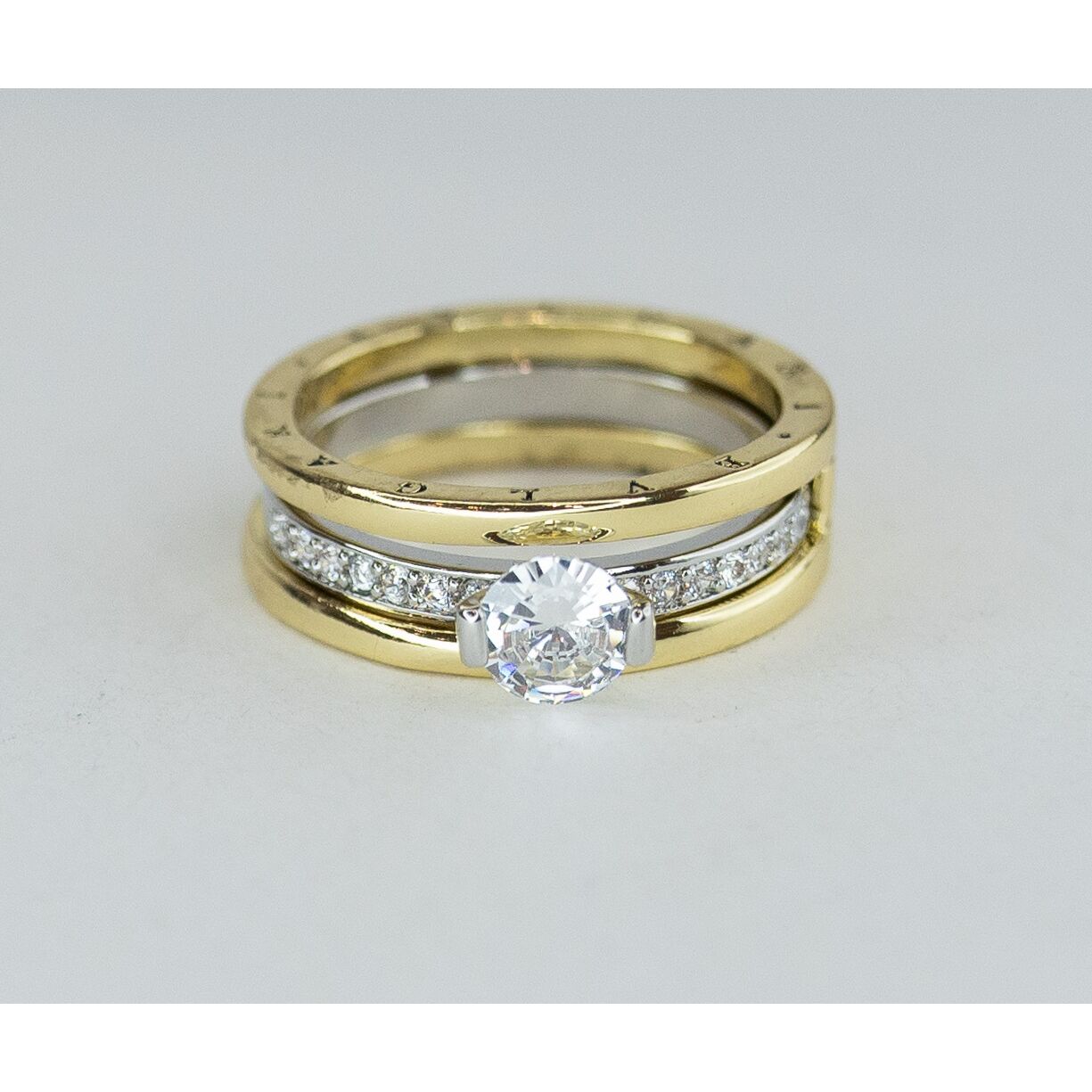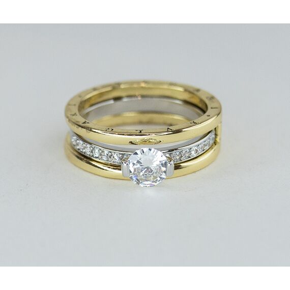 Кольцо женское из высококачественного ювелирного сплава серого и желтого цвета. Вставка- цирконы белого цвета. Высота кольца-1,0см, ширина-2,0см. Кольцо- трансформер, 2 в 1. Размер-18,0.