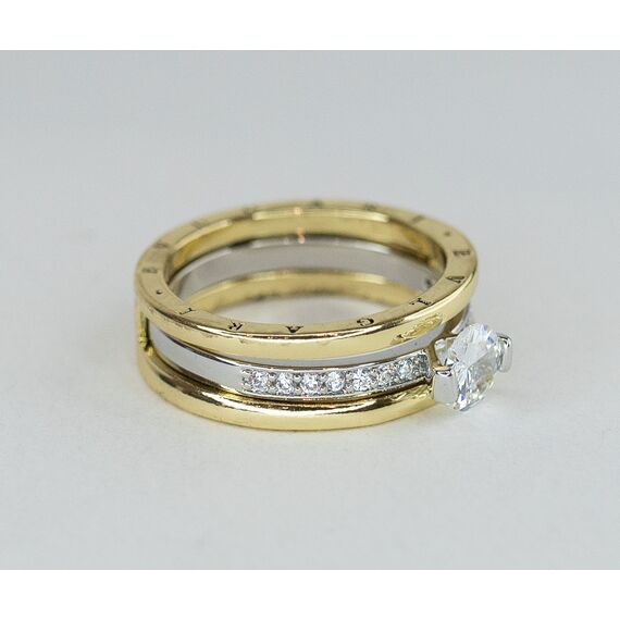 Кольцо женское из высококачественного ювелирного сплава серого и желтого цвета. Вставка- цирконы белого цвета. Высота кольца-1,0см, ширина-2,0см. Кольцо- трансформер, 2 в 1. Размер-19,0.
