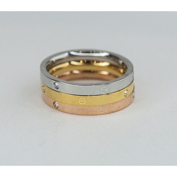 Кольцо женское из высококачественного ювелирного сплава серого, розового и желтого цвета. Вставка- циркон белого цвета. Высота кольца-1,5см, ширина-2,0см. Кольцо- трансформер, 3 в 1. Размер-18,0.